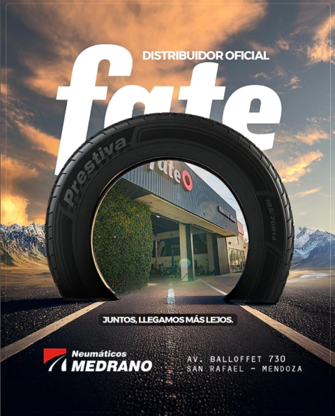 Somos una empresa con gran trayectoria en San Rafael. Como parte del Grupo Medrano, tenemos el compromiso de brindar a nuestros clientes los mejores servicios en la venta, mantenimiento y colocación de neumáticos. Nuestros productos cuentan con la garantía de FATE. SOMOS DISTRIBUIDORES OFICIALES DE FATE.